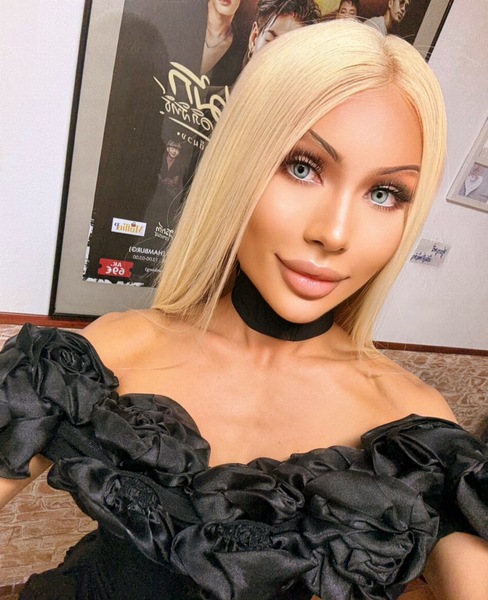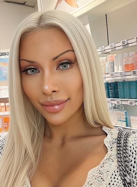 Haare:blond, rückenlang